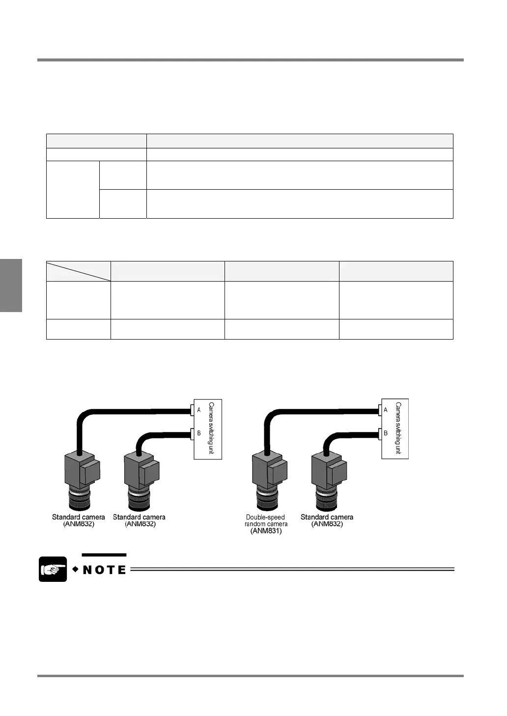 Note that you cannot connect a different type of camera to the camera switching unit.