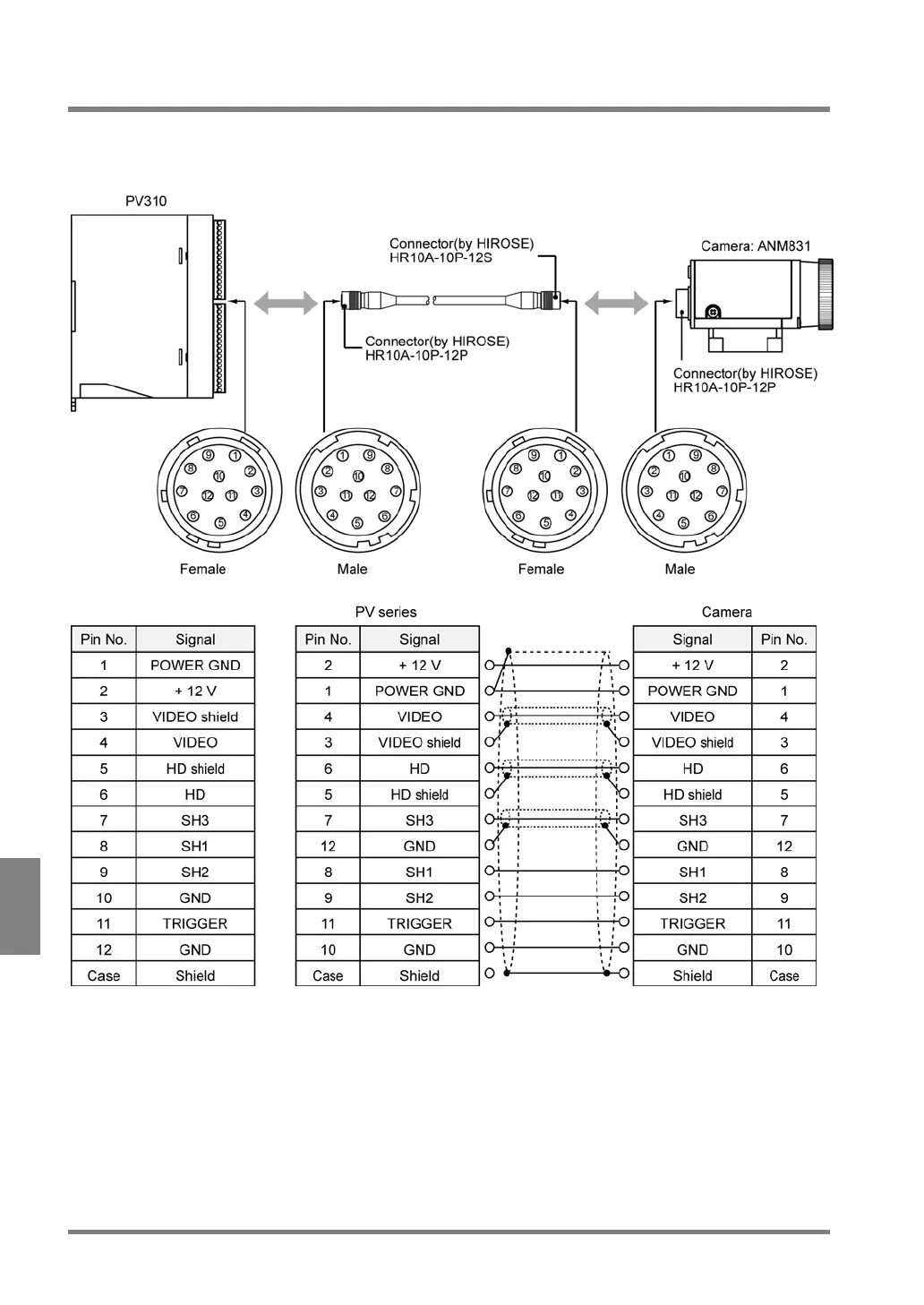 Panasonic Micro-Imagechecker PV310 - Pin Assignment of Camera