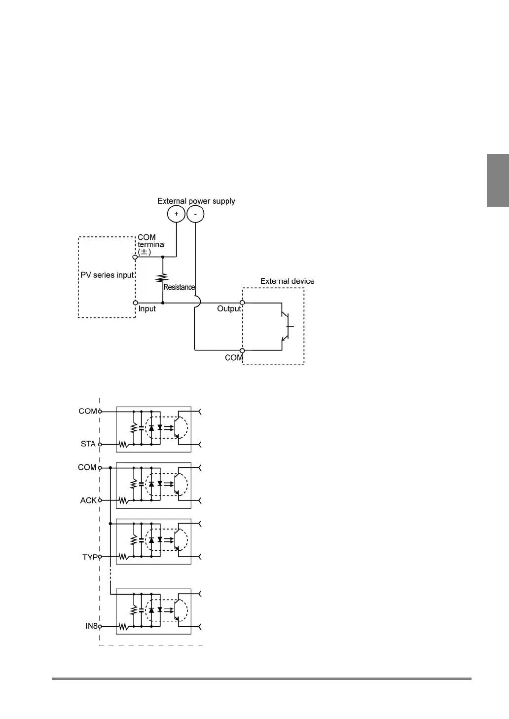 • The PV310 accepts (+/-) common. To prevent input signal chattering, use a non-contact input (transistor