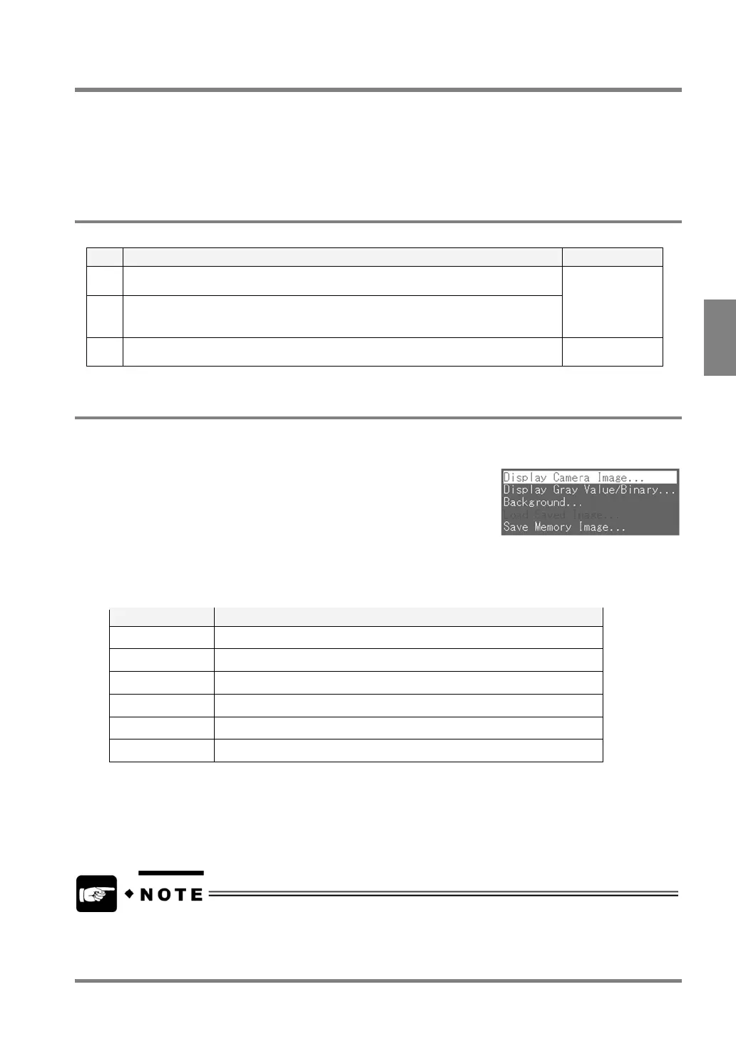 key on the keypad and then selecting “Display Camera Image” or “Display Gray Value/Binary”. In RUN mode, you
