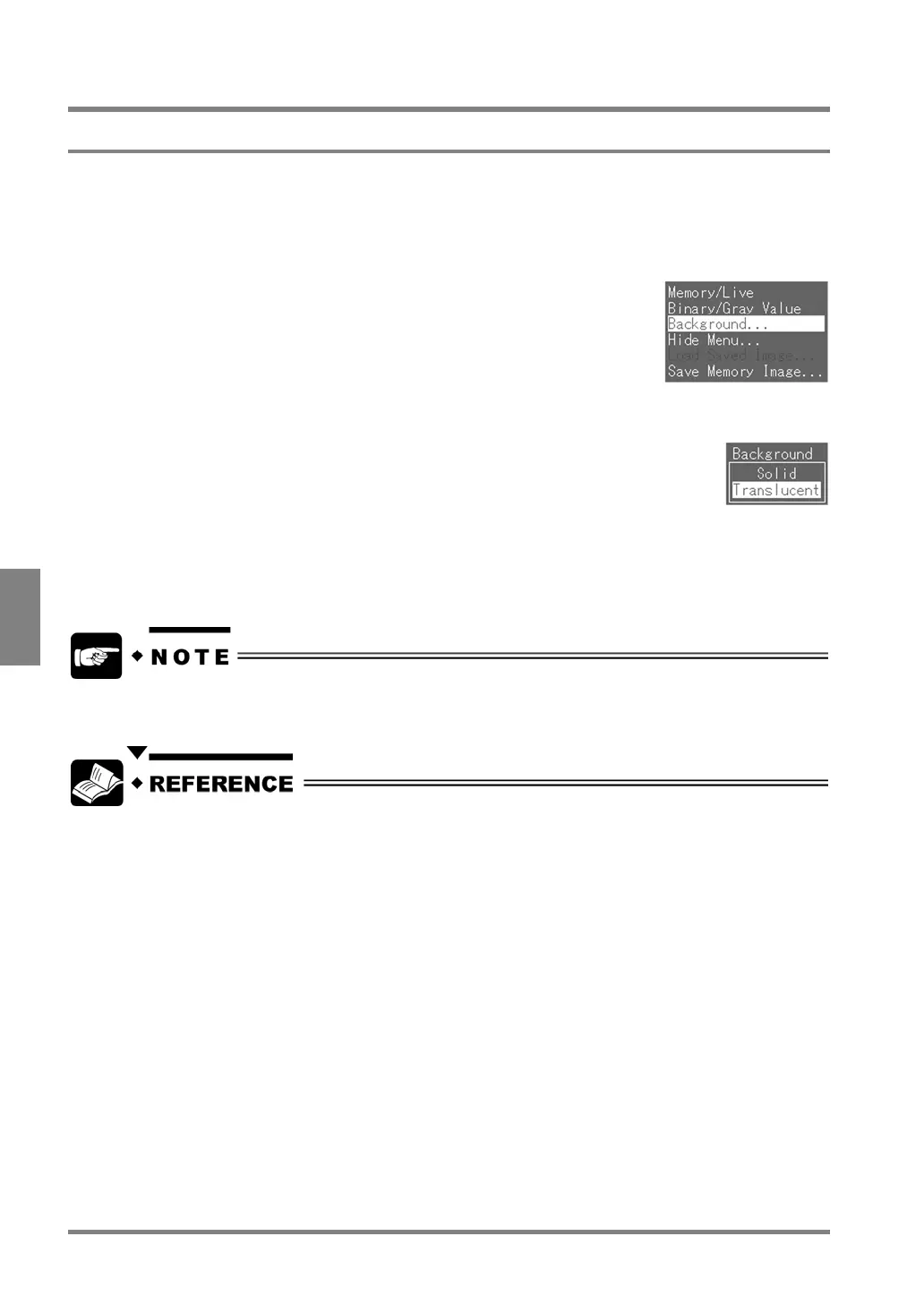 >”Background” > “Translucent”. Refer to page 222.