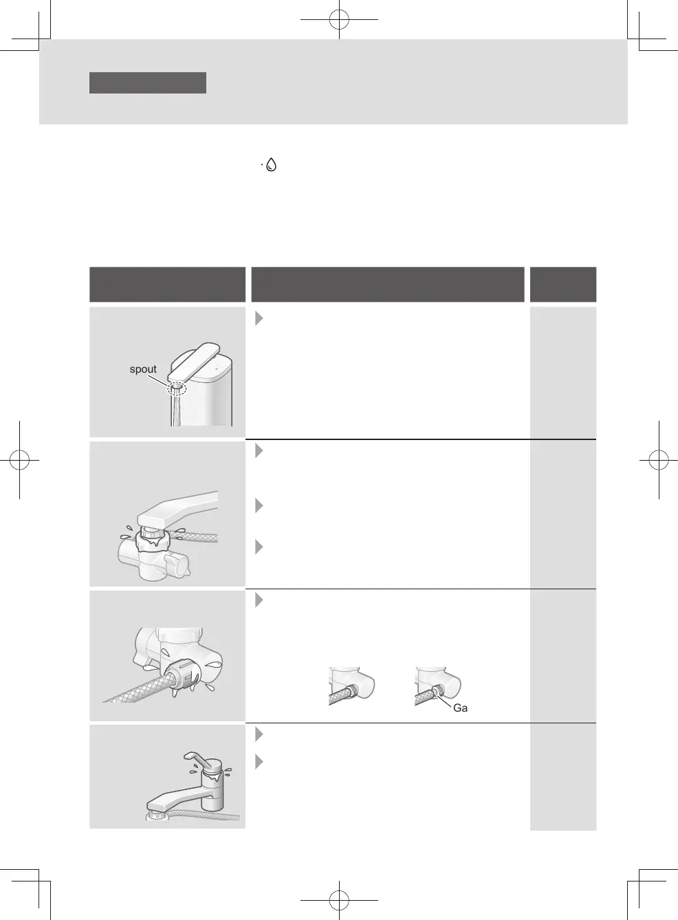 If air is not removed, water is poorly drained o from the main spout when stopped.