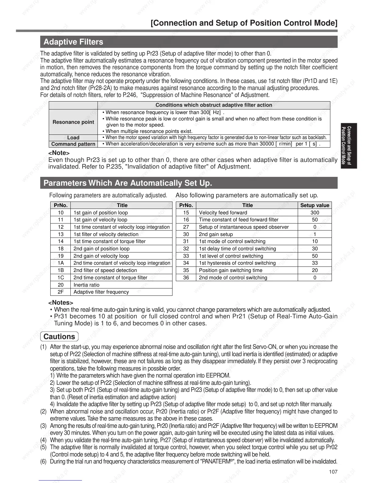 The adaptive filter is validated by setting up Pr23 (Setup of adaptive filter mode) to other than 0.