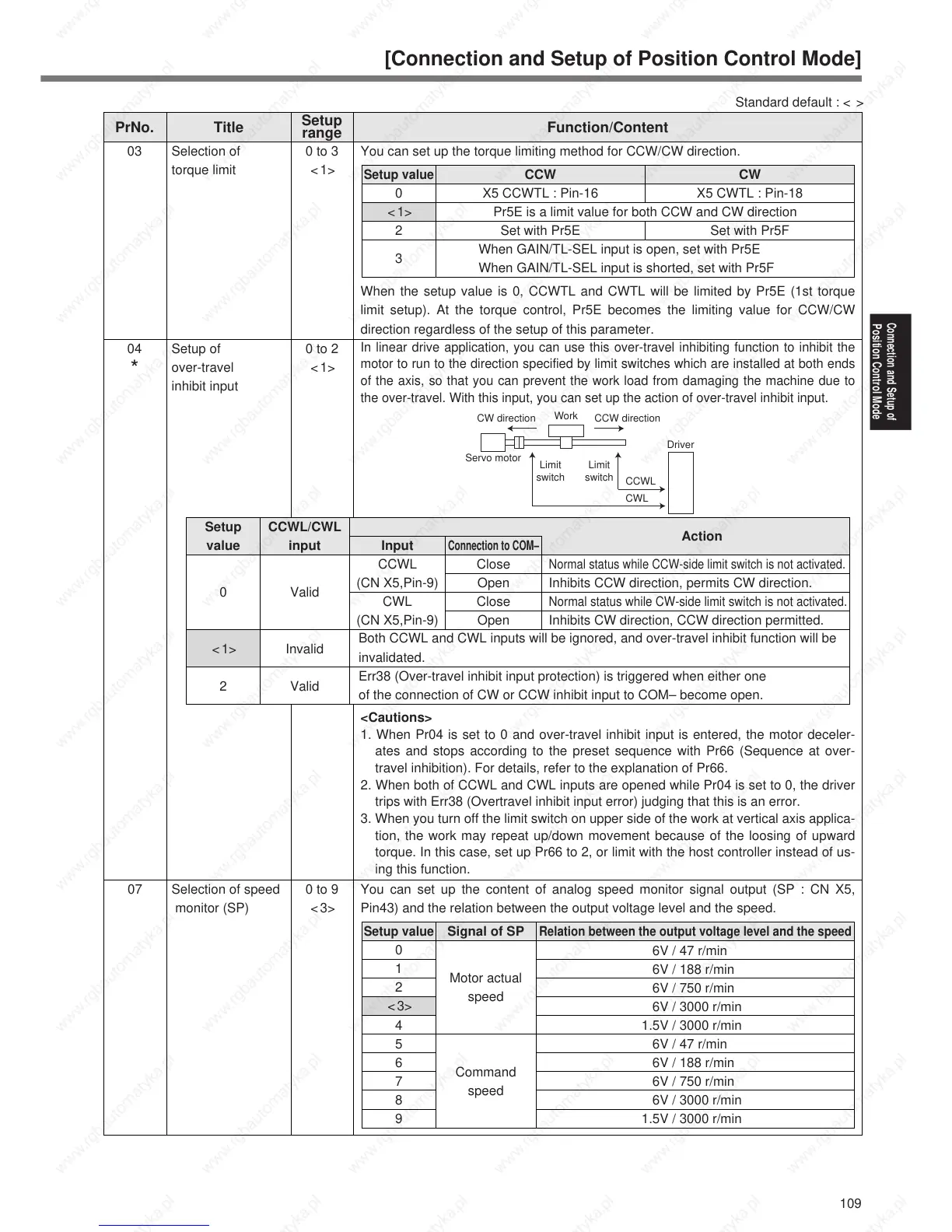 limit setup). At the torque control, Pr5E becomes the limiting value for CCW/CW