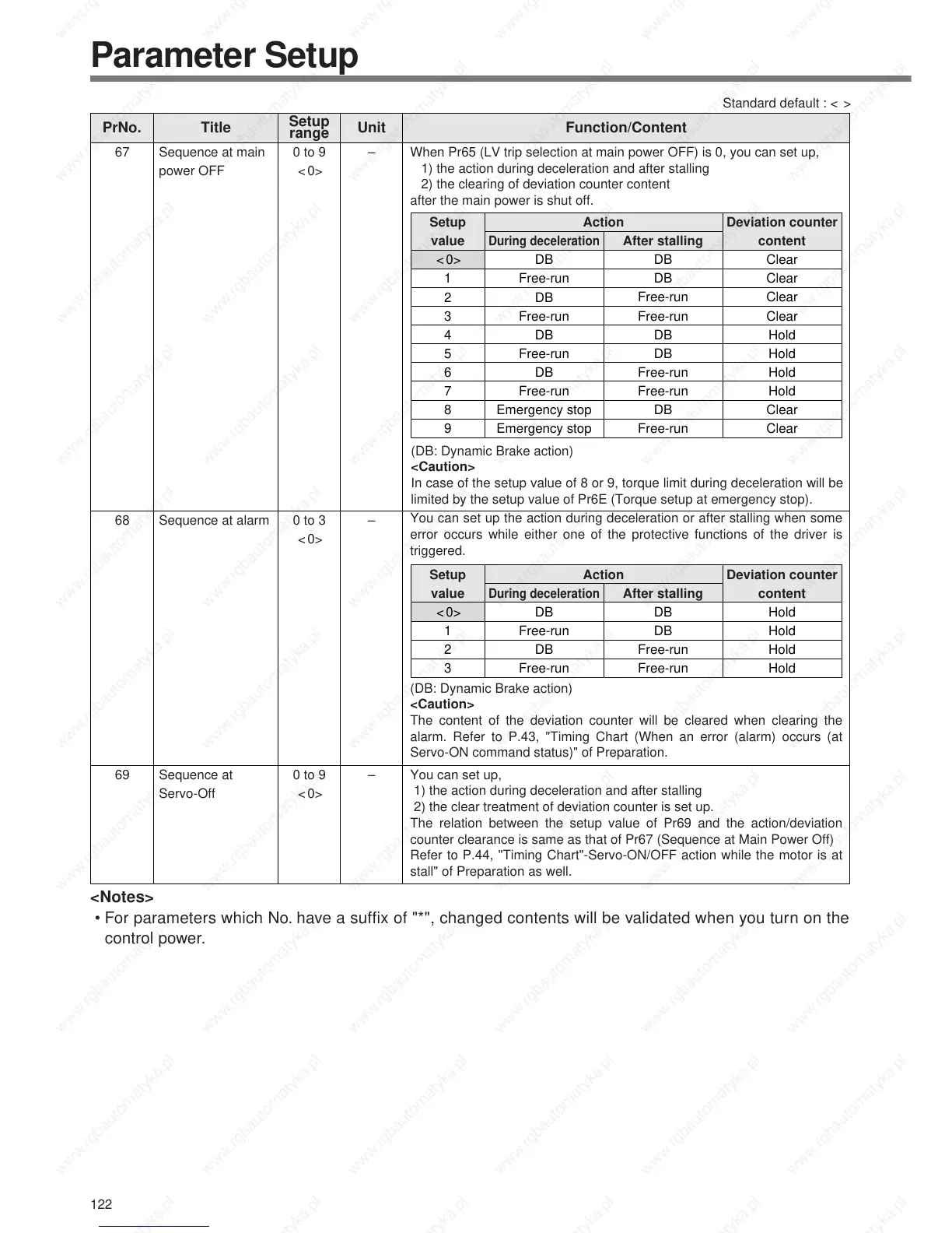 •For parameters which No. have a suffix of "*", changed contents will be validated when you turn on the