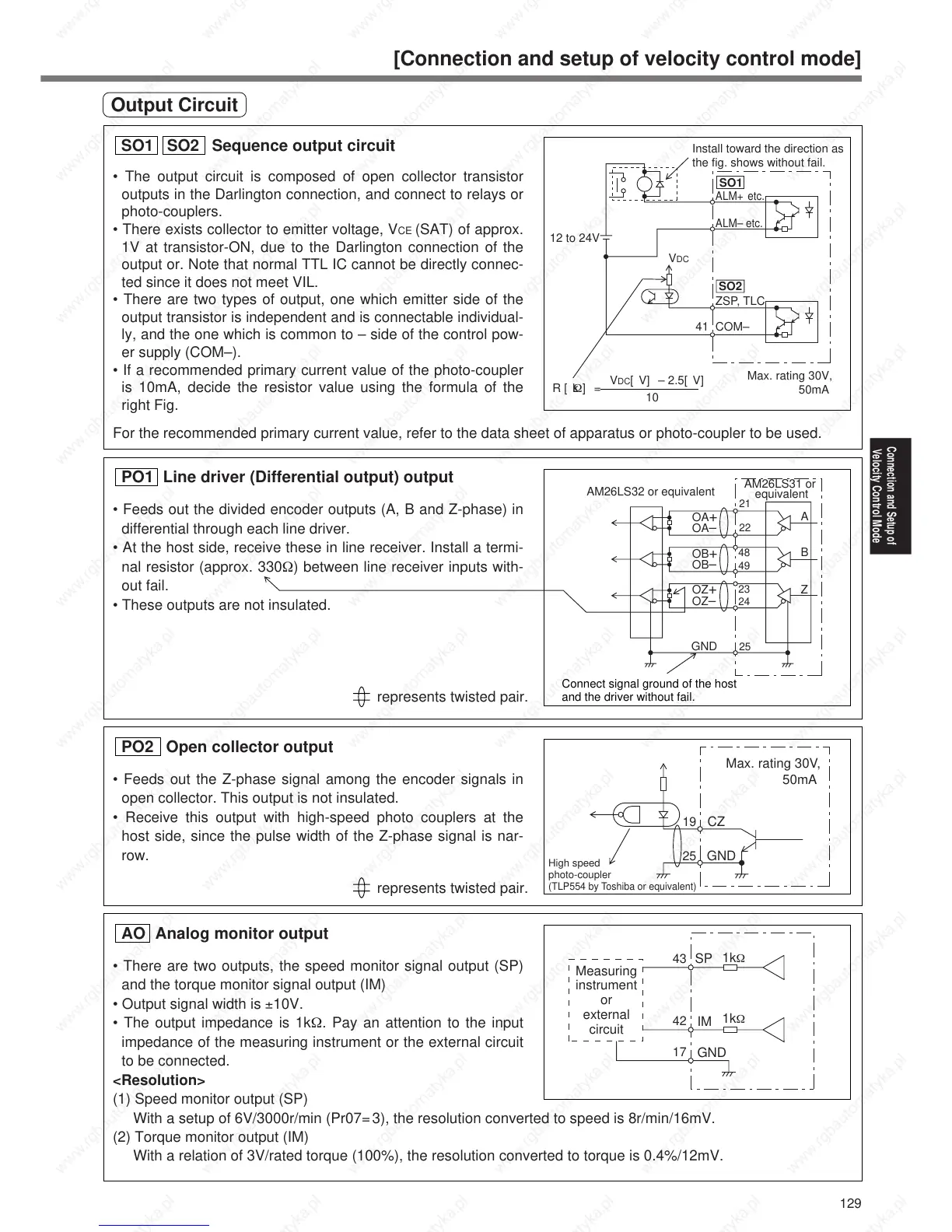 • There are two outputs, the speed monitor signal output (SP)