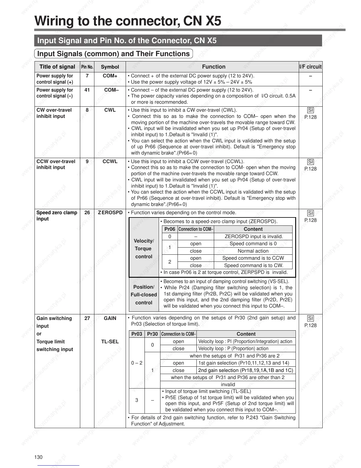 • CWL input will be invalidated when you set up Pr04 (Setup of over-travel