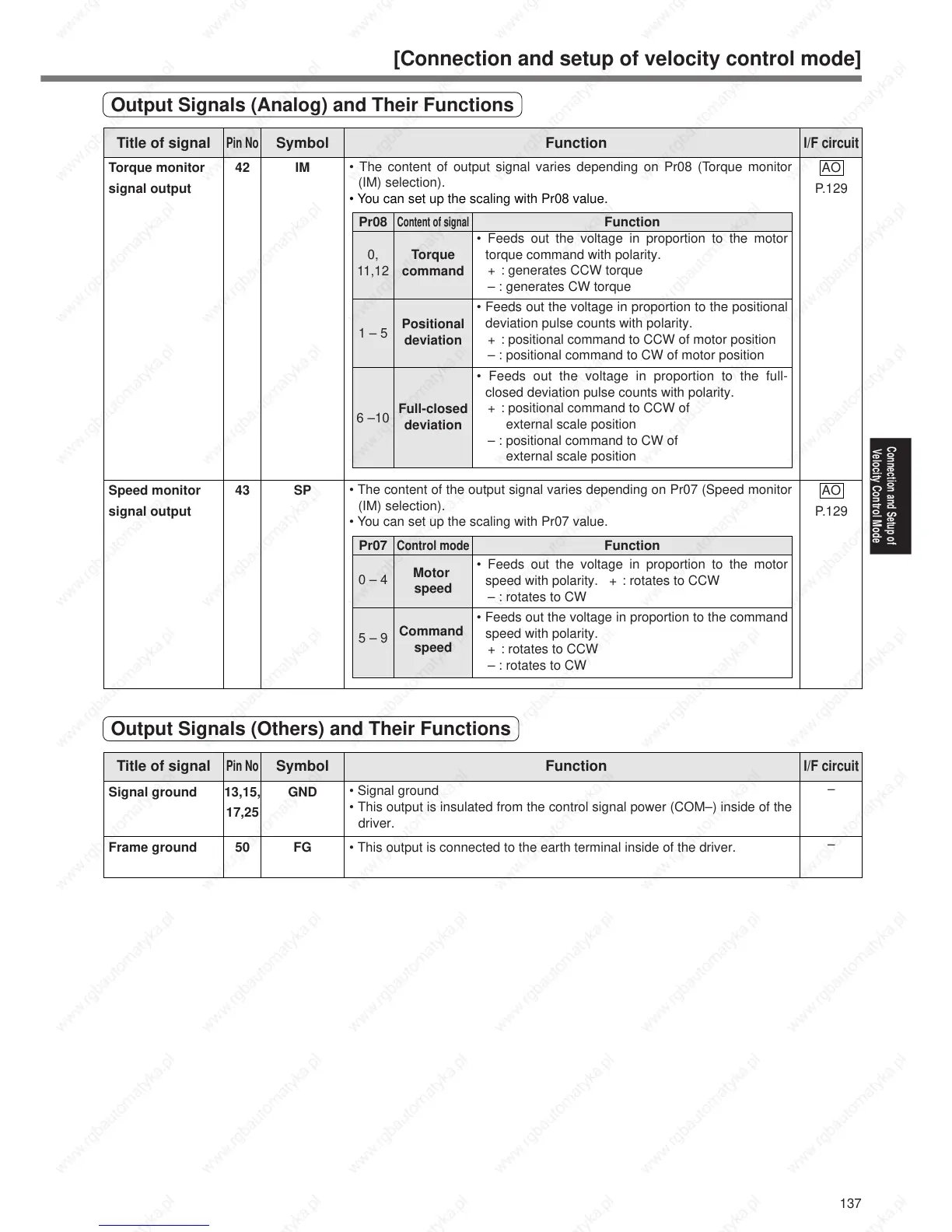 • The content of the output signal varies depending on Pr07 (Speed monitor