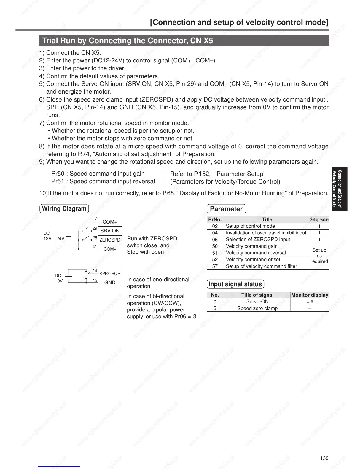 SPR (CN X5, Pin-14) and GND (CN X5, Pin-15), and gradually increase from 0V to confirm the motor