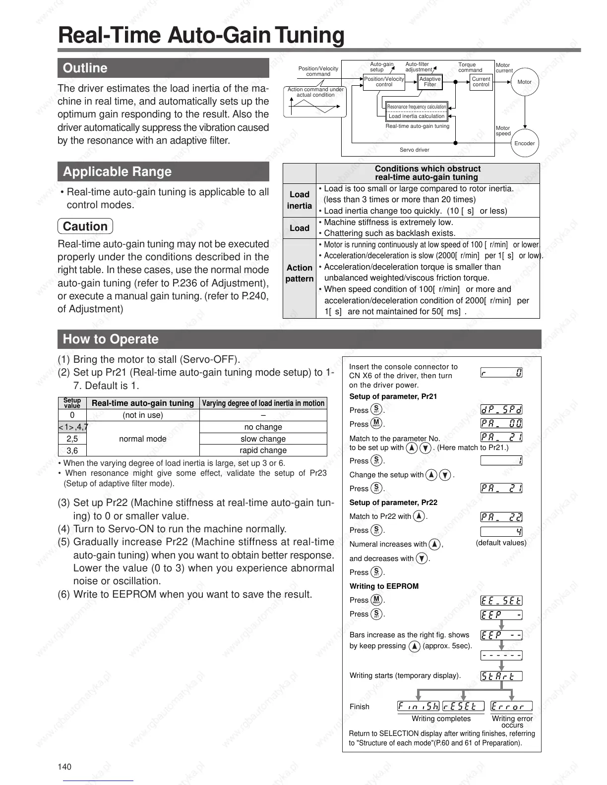 (2) Set up Pr21 (Real-time auto-gain tuning mode setup) to 1-