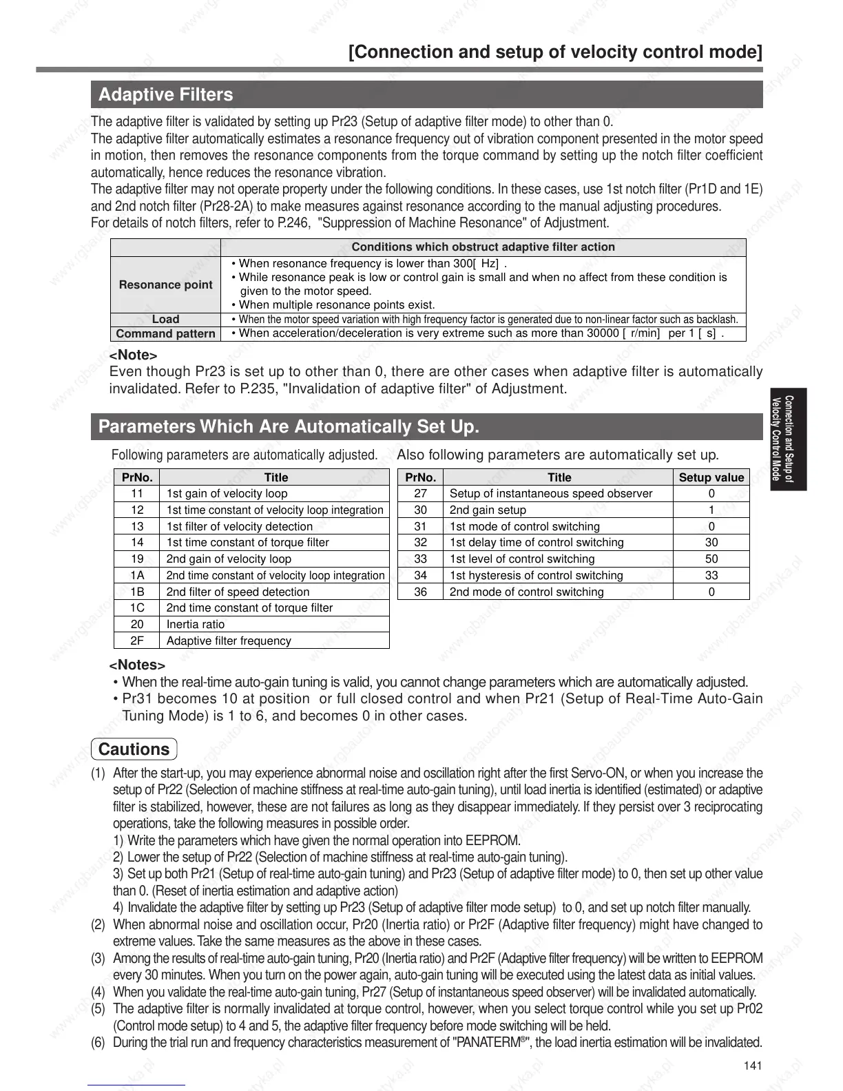 The adaptive filter is validated by setting up Pr23 (Setup of adaptive filter mode) to other than 0.