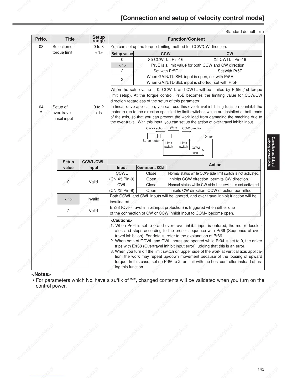 limit setup). At the torque control, Pr5E becomes the limiting value for CCW/CW