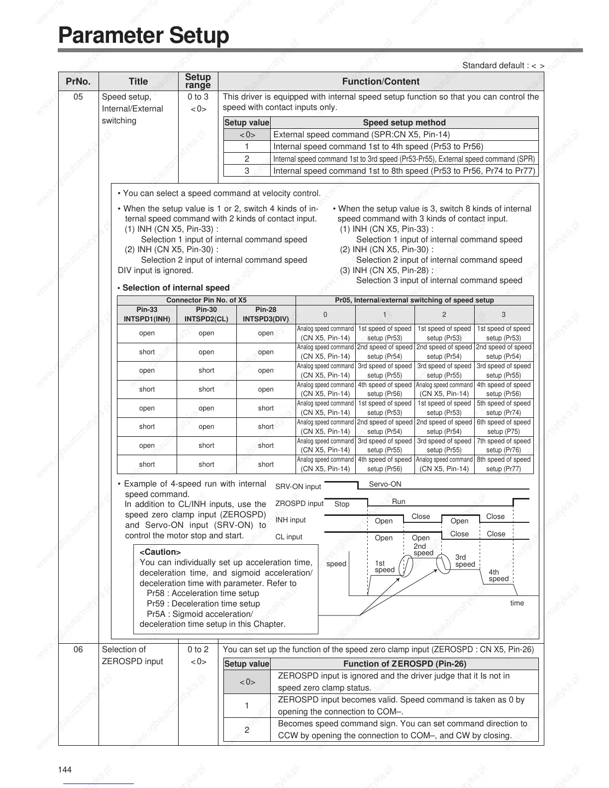 Connector Pin No. of X5 Pr05, Internal/external switching of speed setup