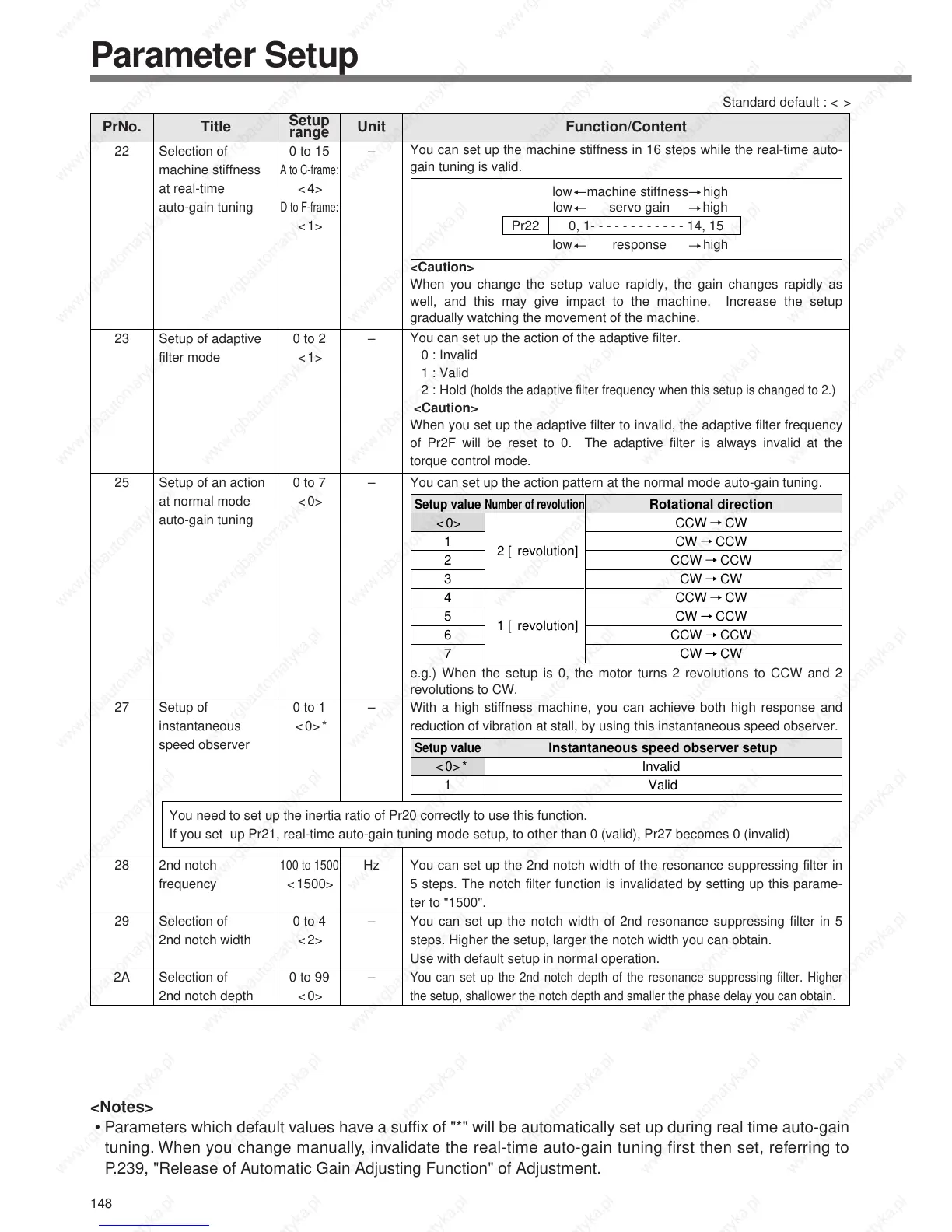 If you set up Pr21, real-time auto-gain tuning mode setup, to other than 0 (valid), Pr27 becomes 0 (invalid)