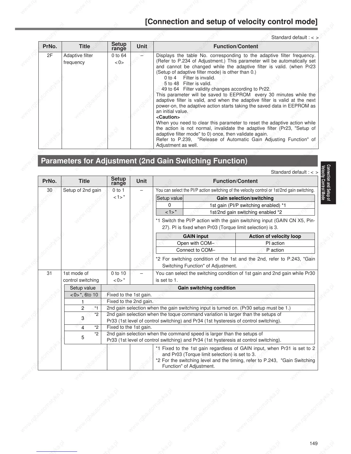 You can select the switching condition of 1st gain and 2nd gain while Pr30