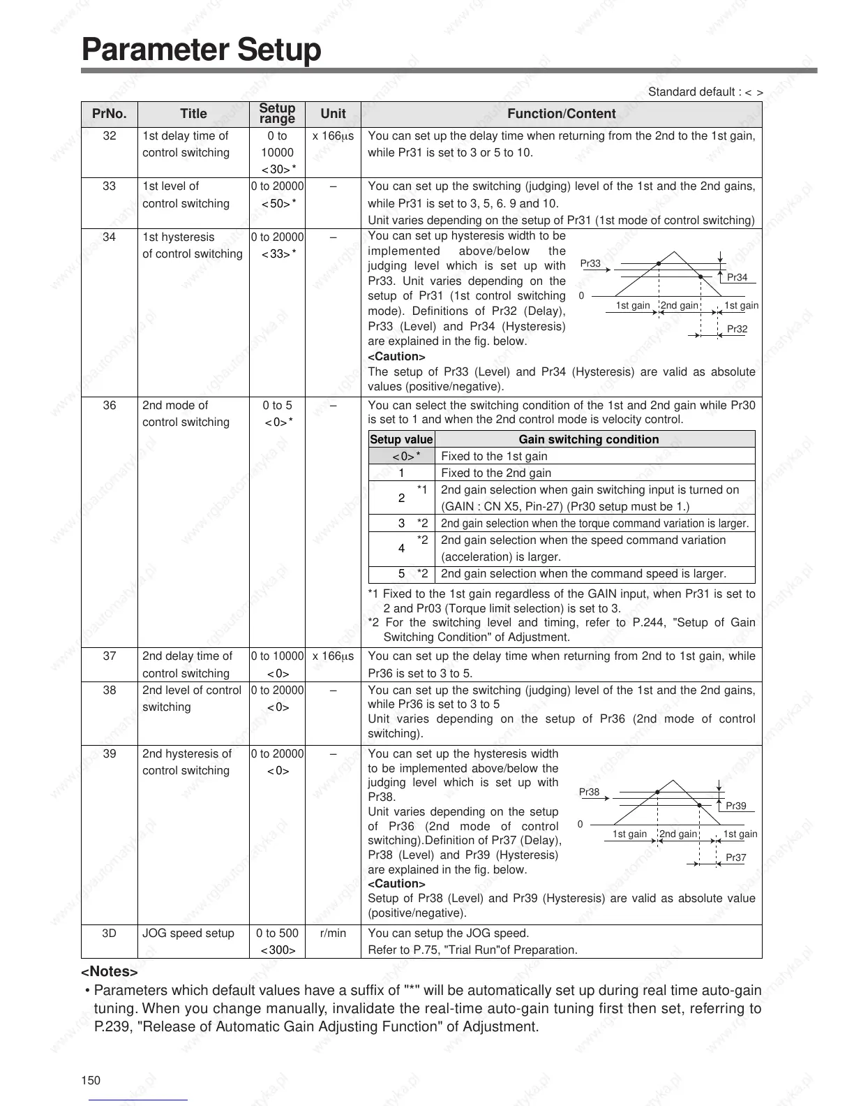 You can select the switching condition of the 1st and 2nd gain while Pr30
