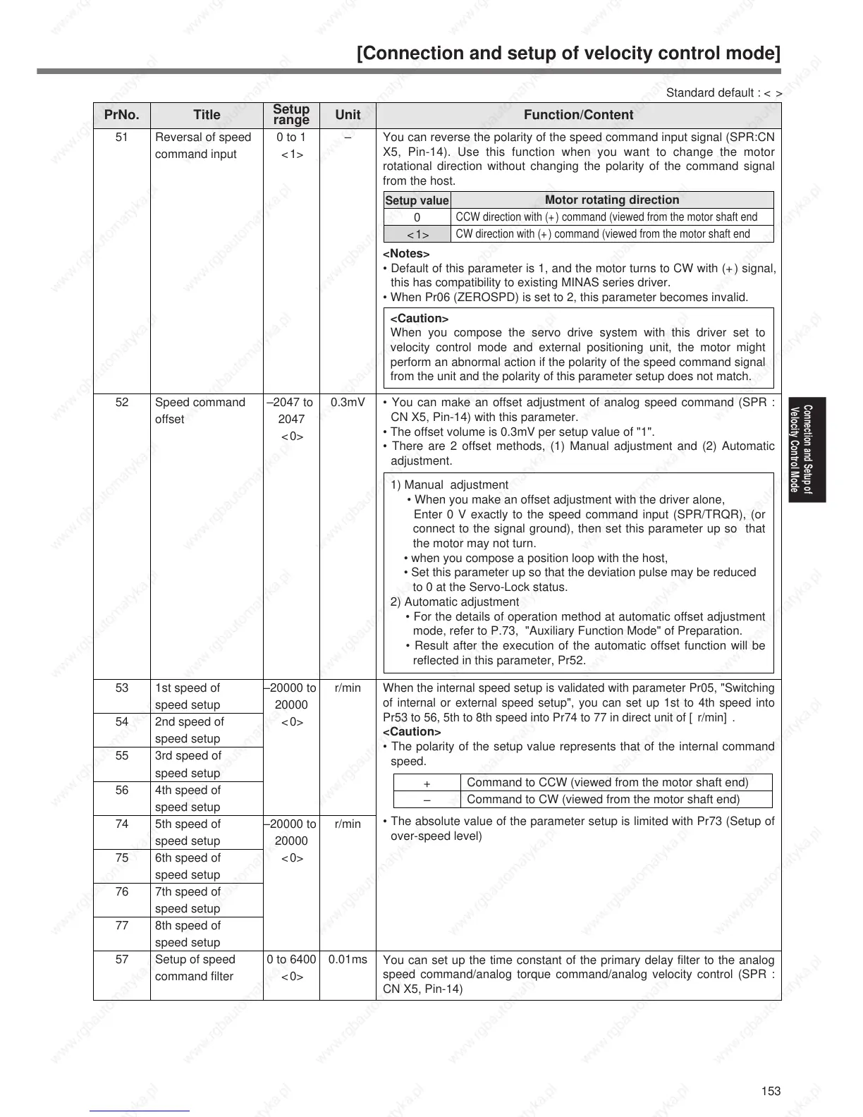 Pr53 to 56, 5th to 8th speed into Pr74 to 77 in direct unit of [r/min].