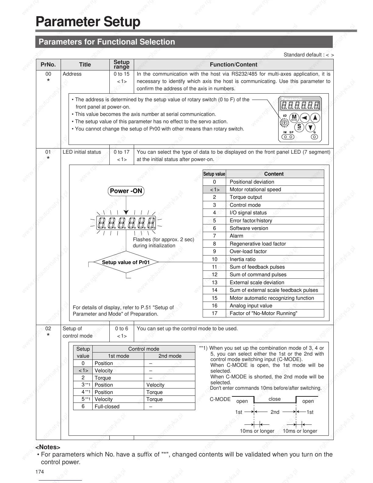 • You cannot change the setup of Pr00 with other means than rotary switch.