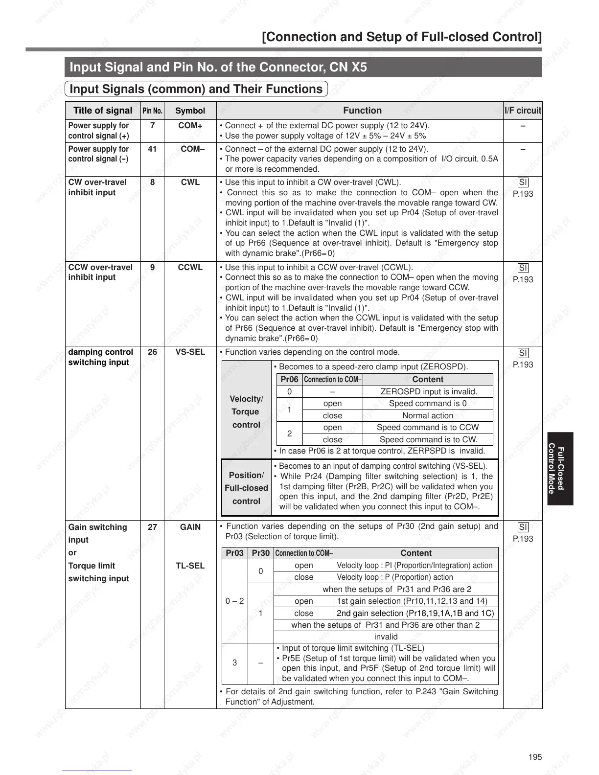 • CWL input will be invalidated when you set up Pr04 (Setup of over-travel