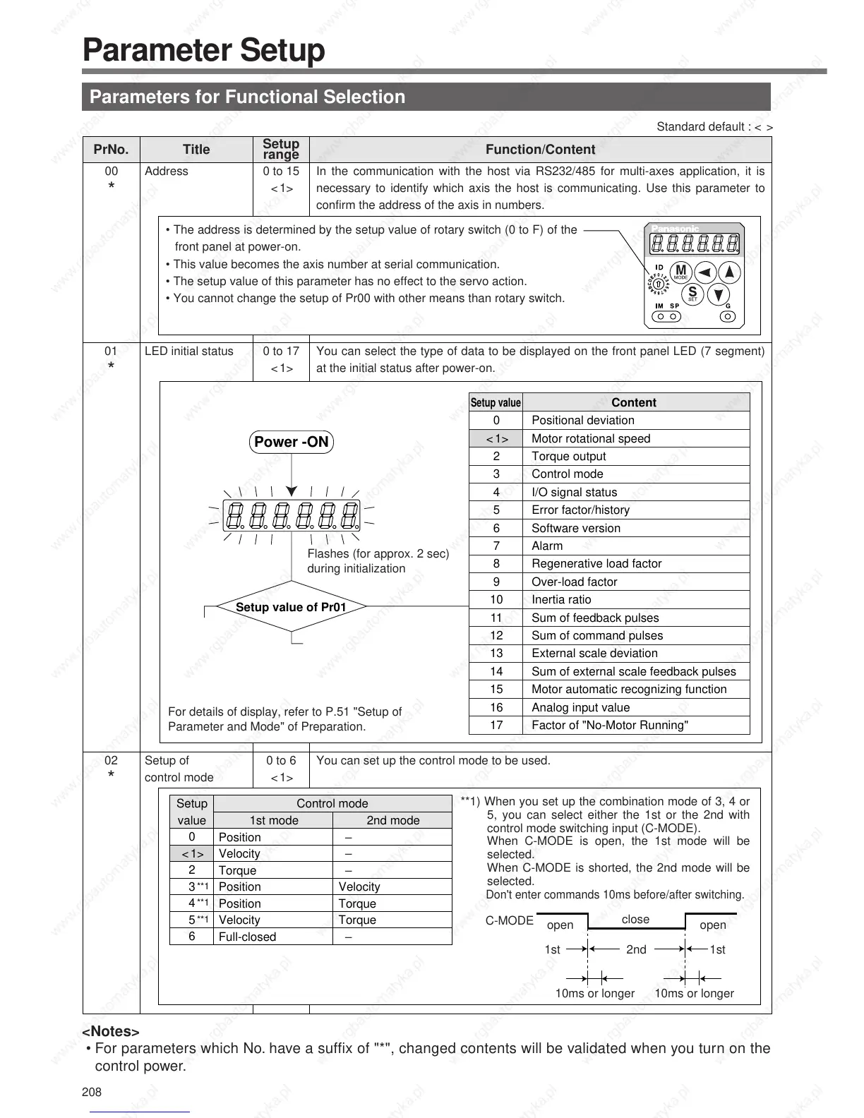 • You cannot change the setup of Pr00 with other means than rotary switch.