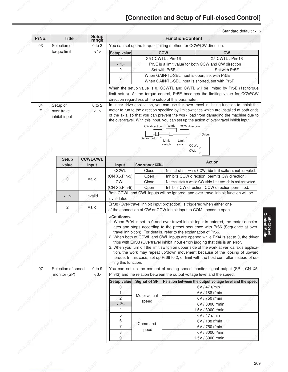 limit setup). At the torque control, Pr5E becomes the limiting value for CCW/CW