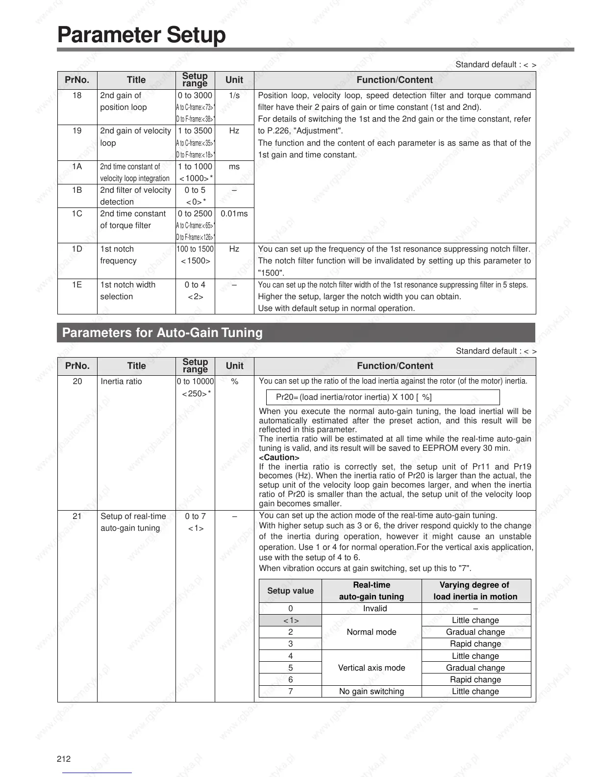 If the inertia ratio is correctly set, the setup unit of Pr11 and Pr19