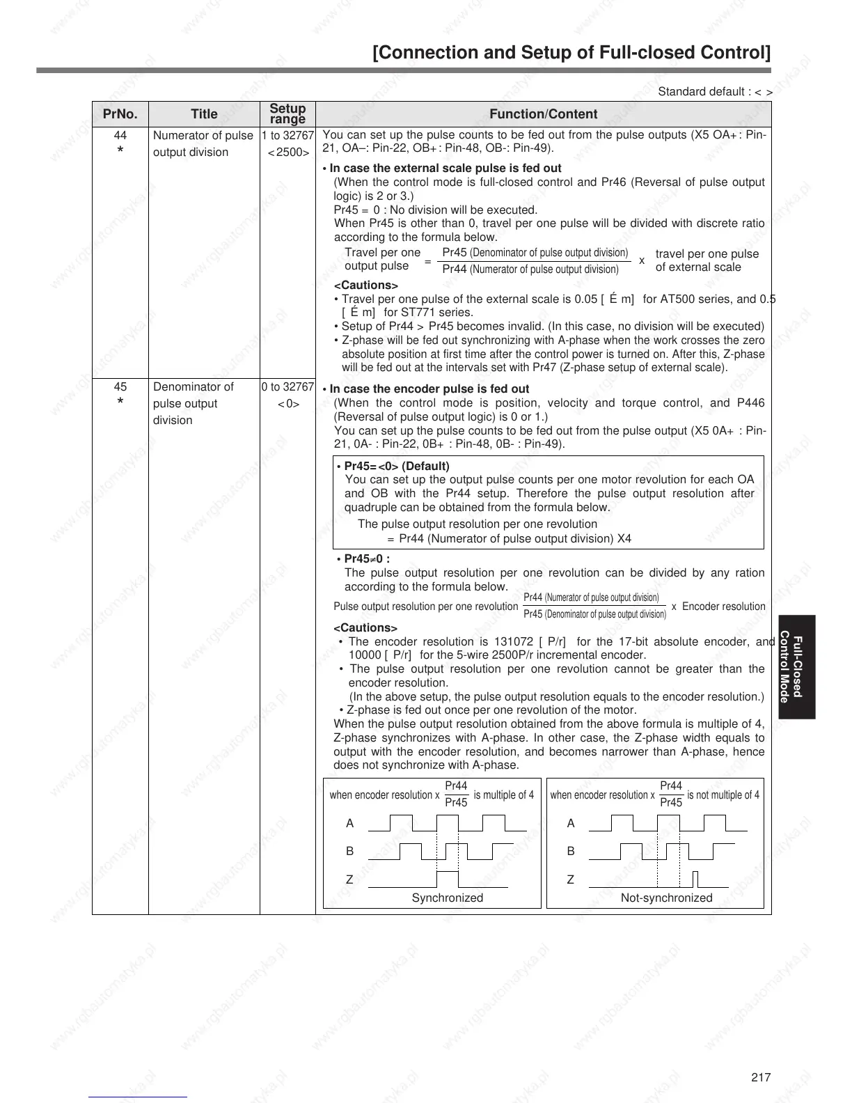 will be fed out at the intervals set with Pr47 (Z-phase setup of external scale).