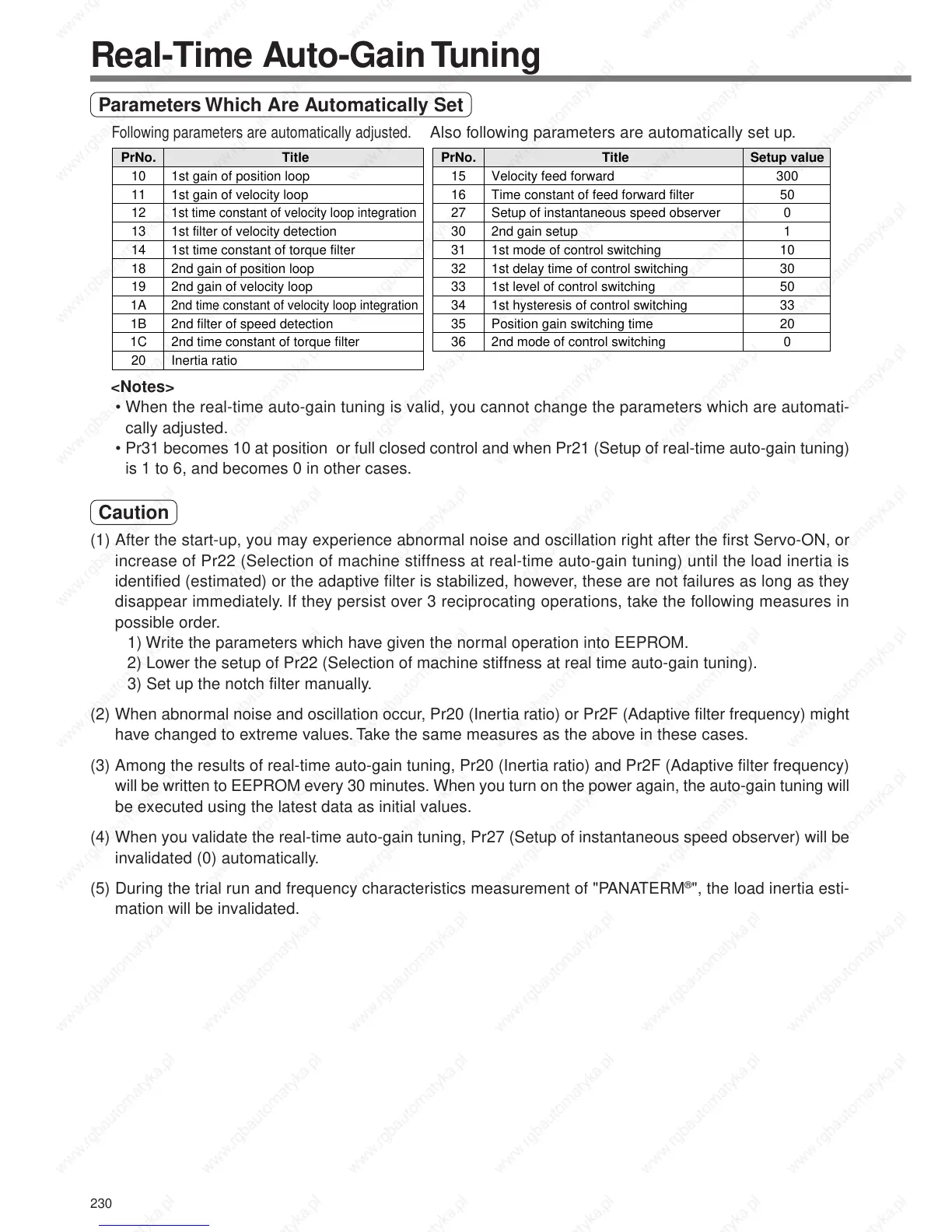 (3) Among the results of real-time auto-gain tuning, Pr20 (Inertia ratio) and Pr2F (Adaptive filter frequency)
