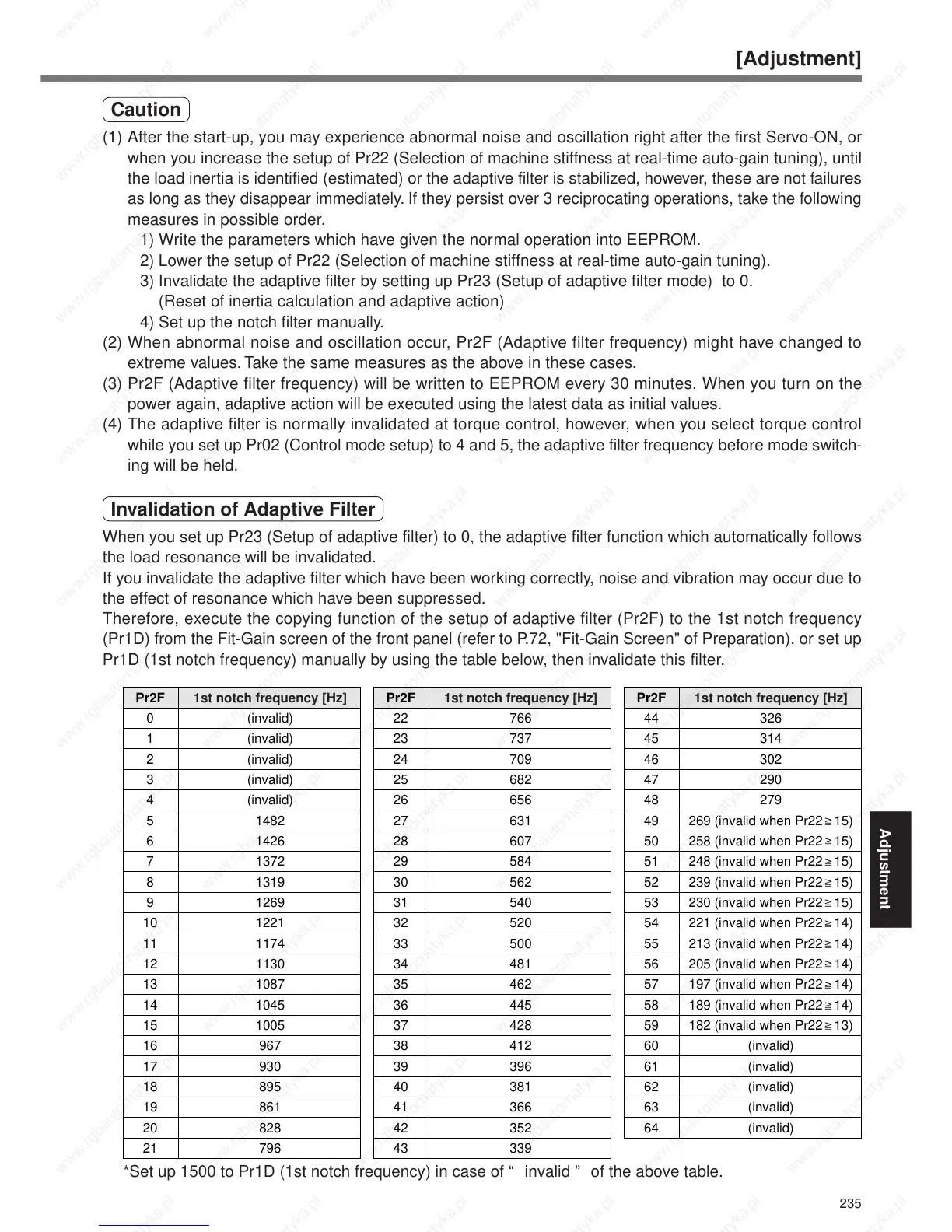 3) Invalidate the adaptive filter by setting up Pr23 (Setup of adaptive filter mode) to 0.
