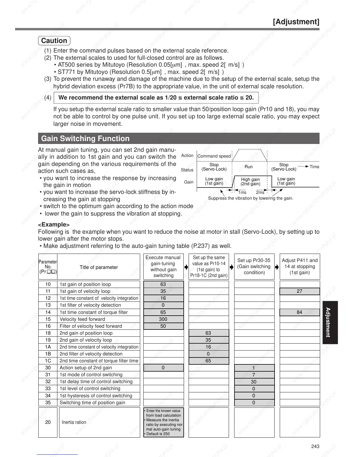 • Make adjustment referring to the auto-gain tuning table (P.237) as well.