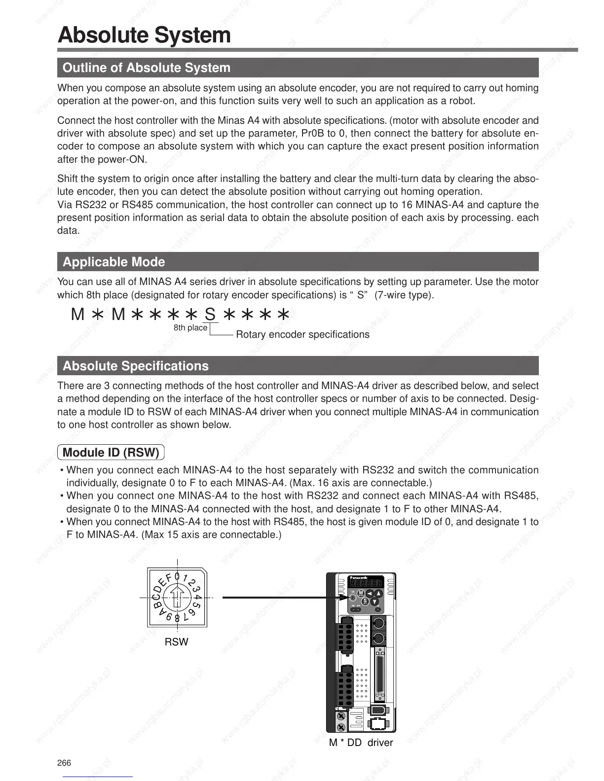 nate a module ID to RSW of each MINAS-A4 driver when you connect multiple MINAS-A4 in communication