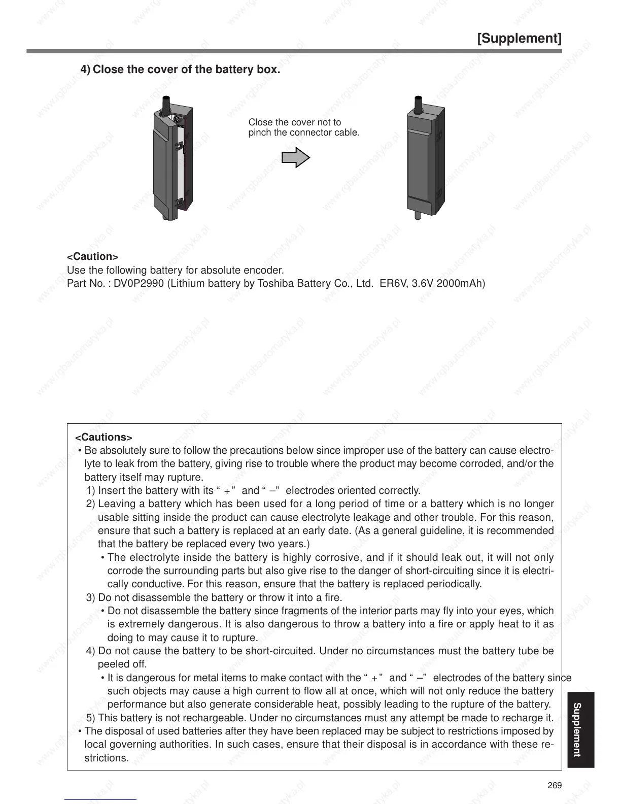 Use the following battery for absolute encoder.