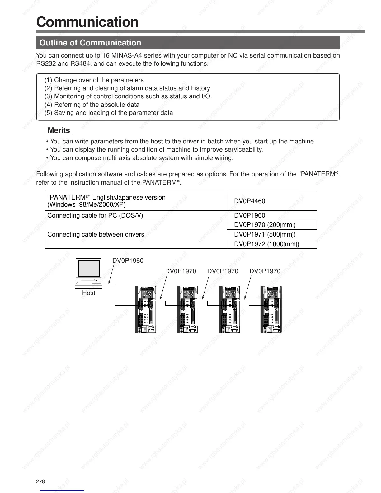 You can connect up to 16 MINAS-A4 series with your computer or NC via serial communication based on