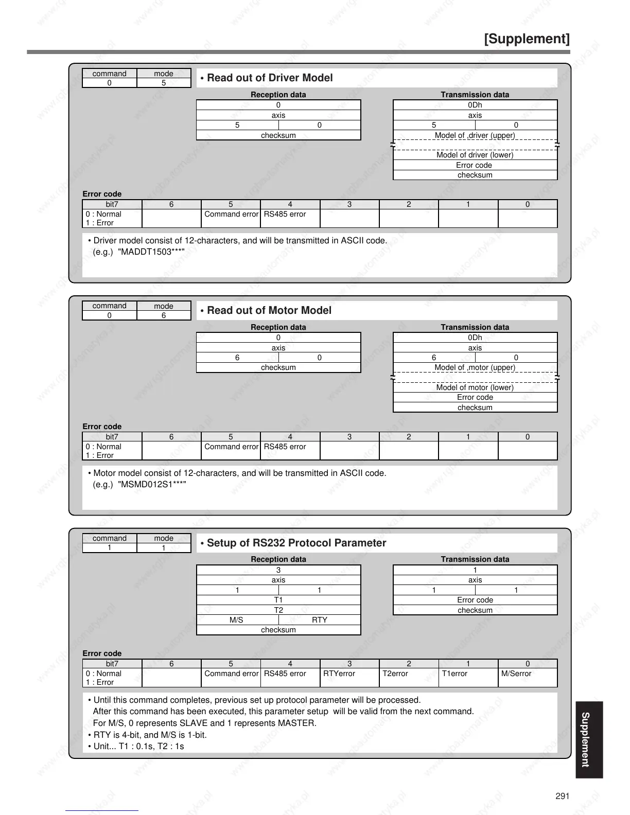 • Motor model consist of 12-characters, and will be transmitted in ASCII code.