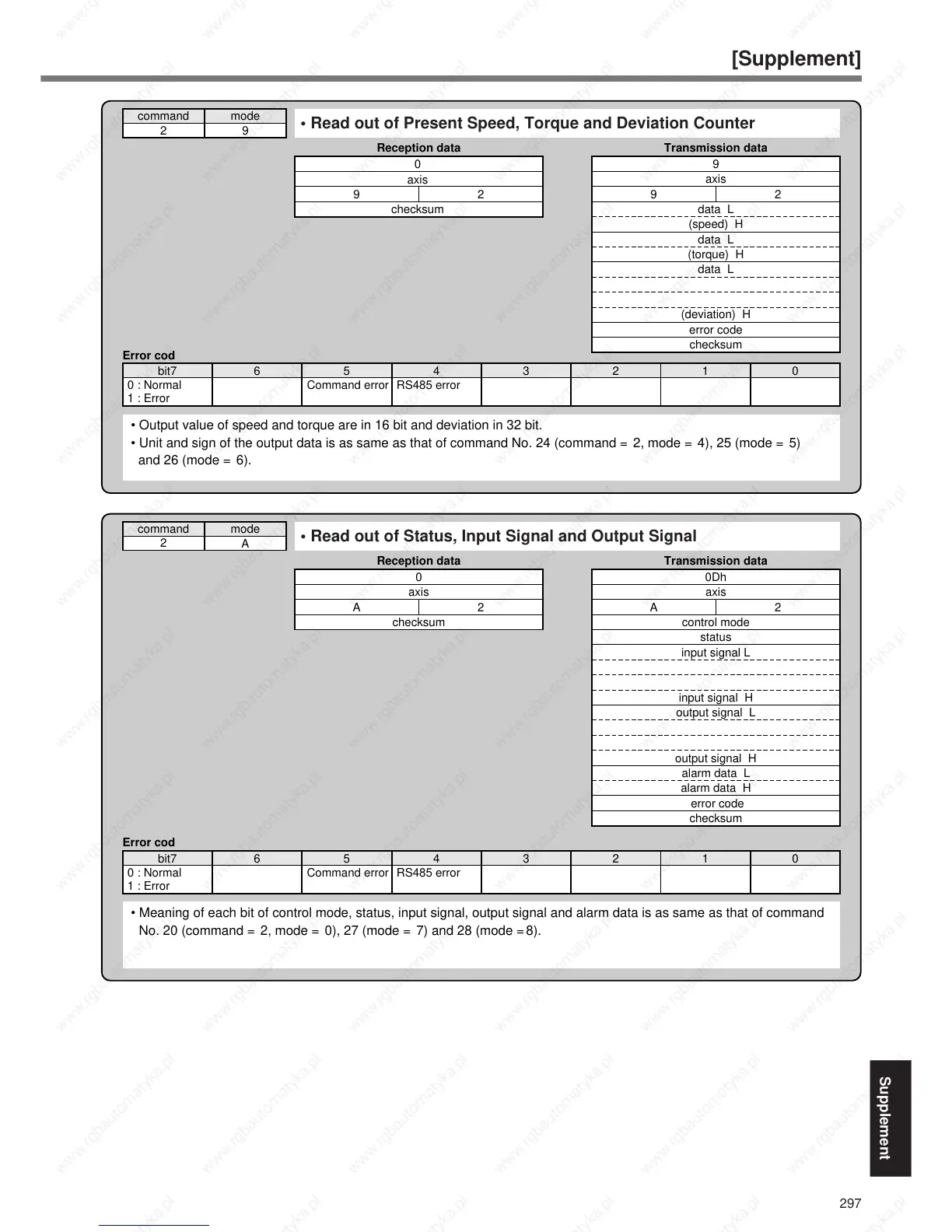 • Meaning of each bit of control mode, status, input signal, output signal and alarm data is as same as that of command
