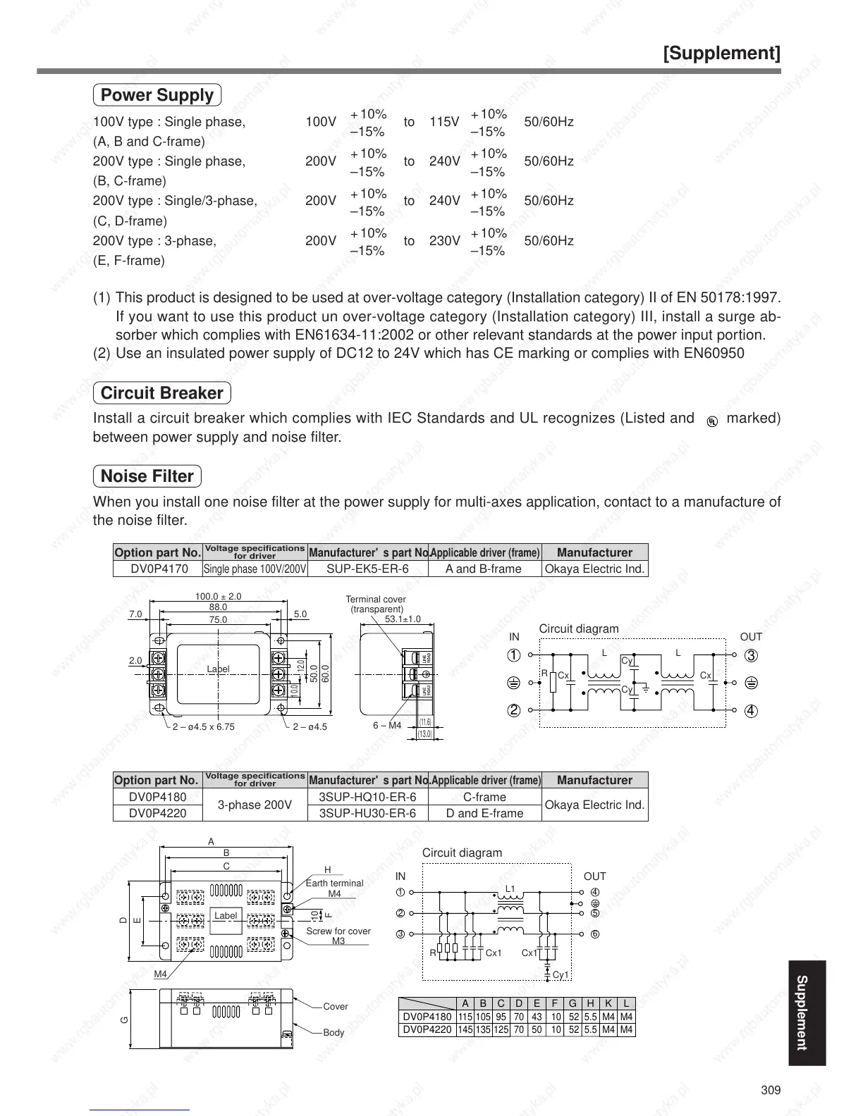 When you install one noise filter at the power supply for multi-axes application, contact to a manufacture of