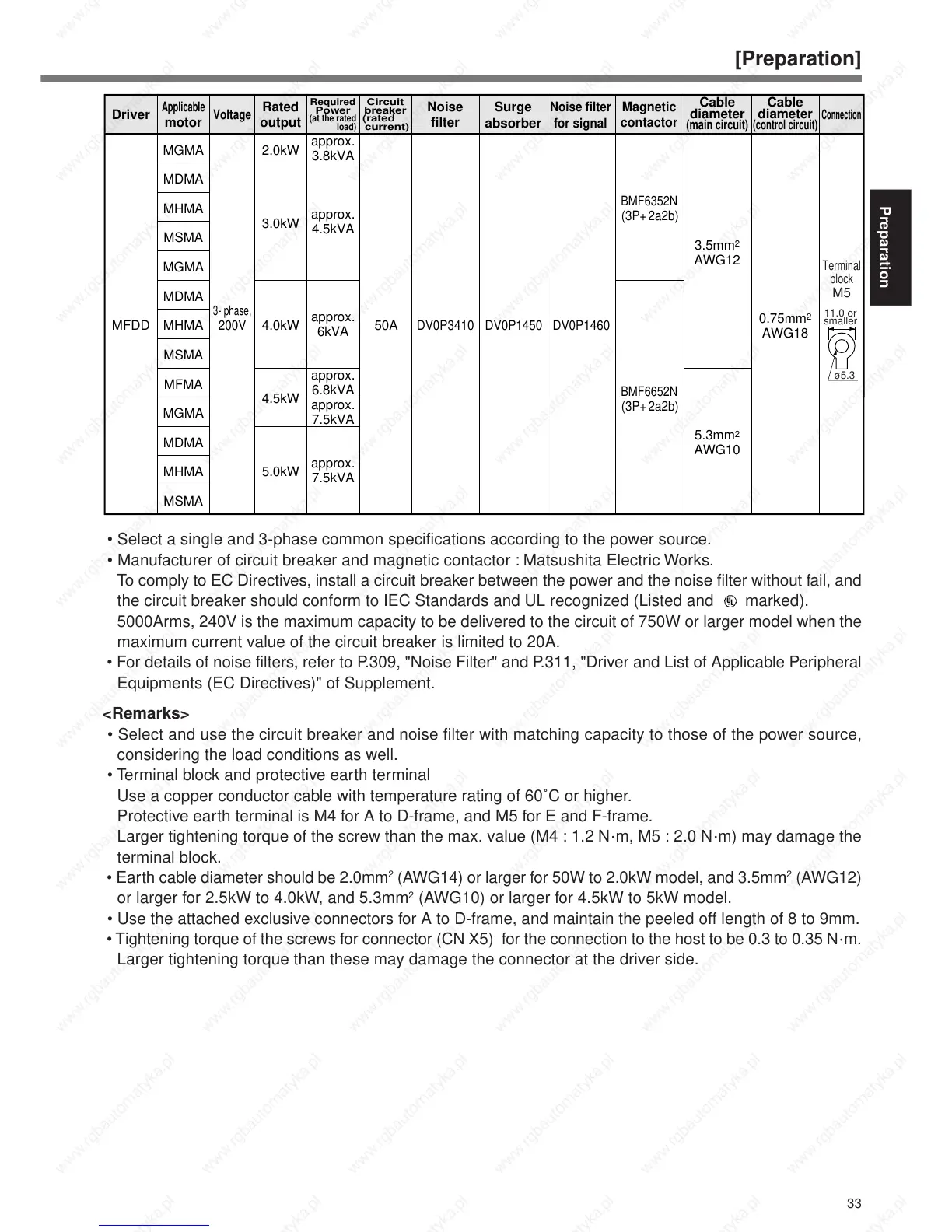 (AWG14) or larger for 50W to 2.0kW model, and 3.5mm