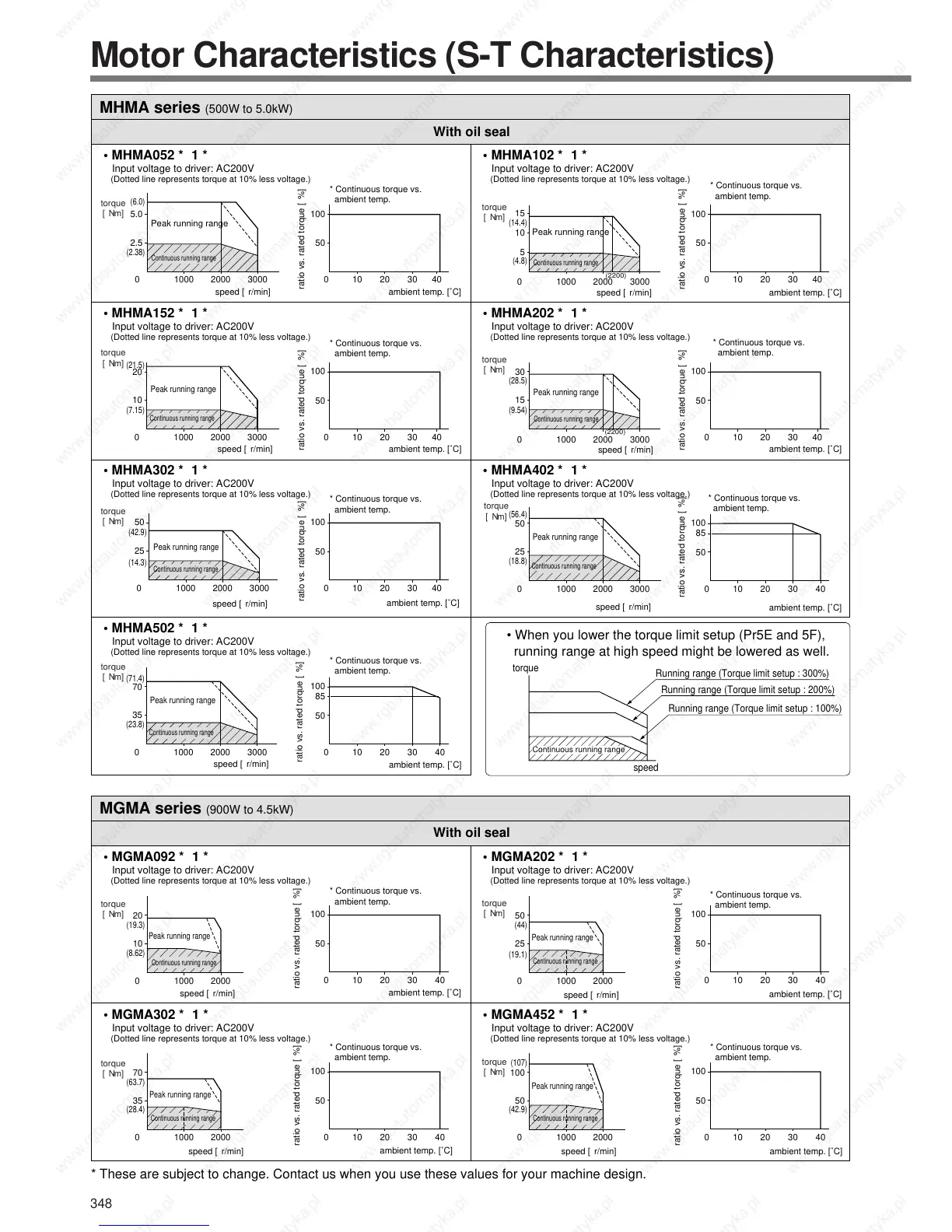 • When you lower the torque limit setup (Pr5E and 5F),