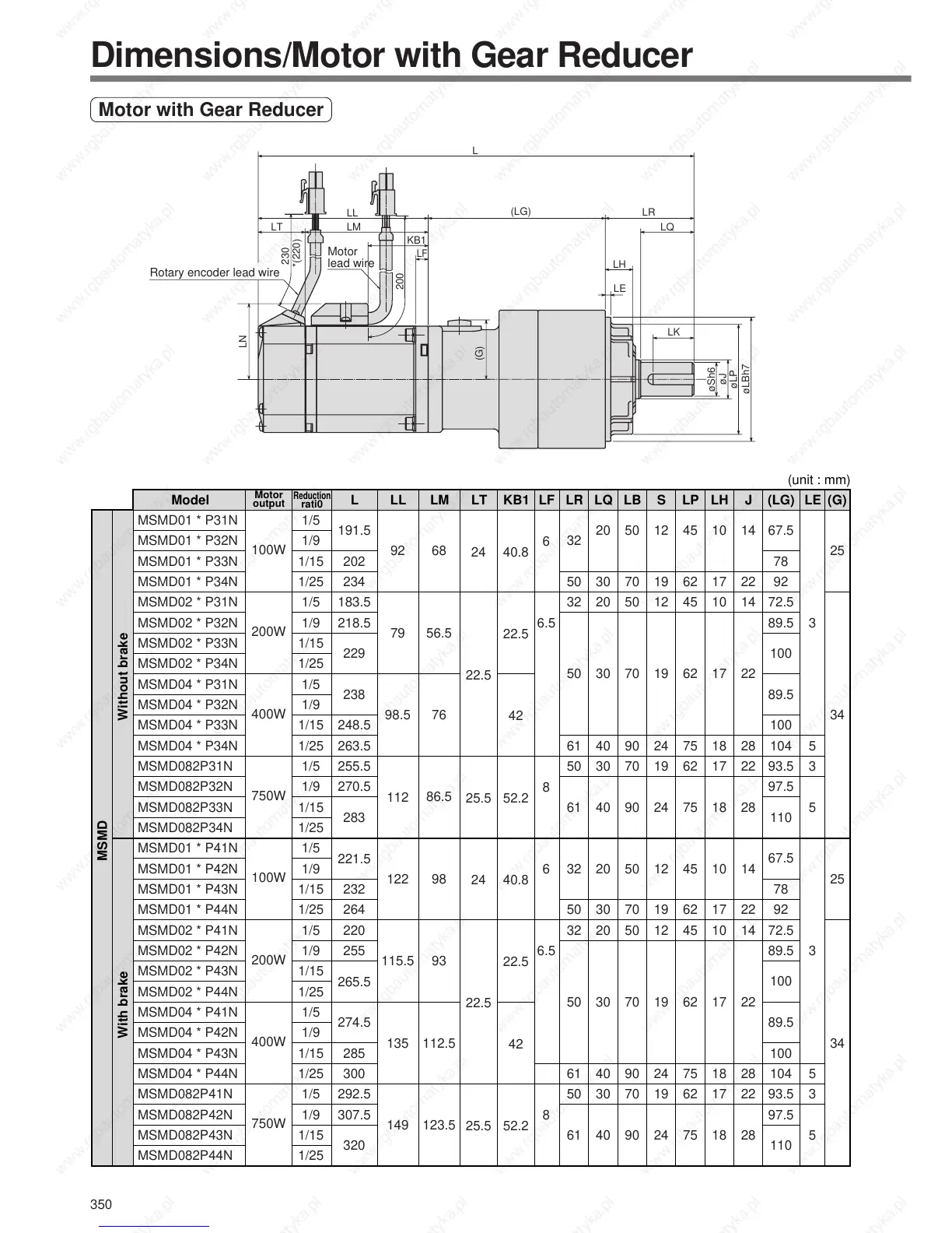 Panasonic Minas A4 Series - Dimensions (Motor with Gear Reducer)