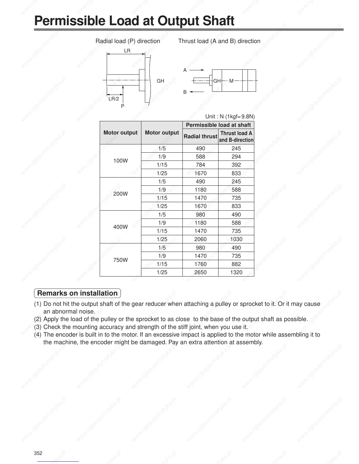 (2) Apply the load of the pulley or the sprocket to as close to the base of the output shaft as possible.