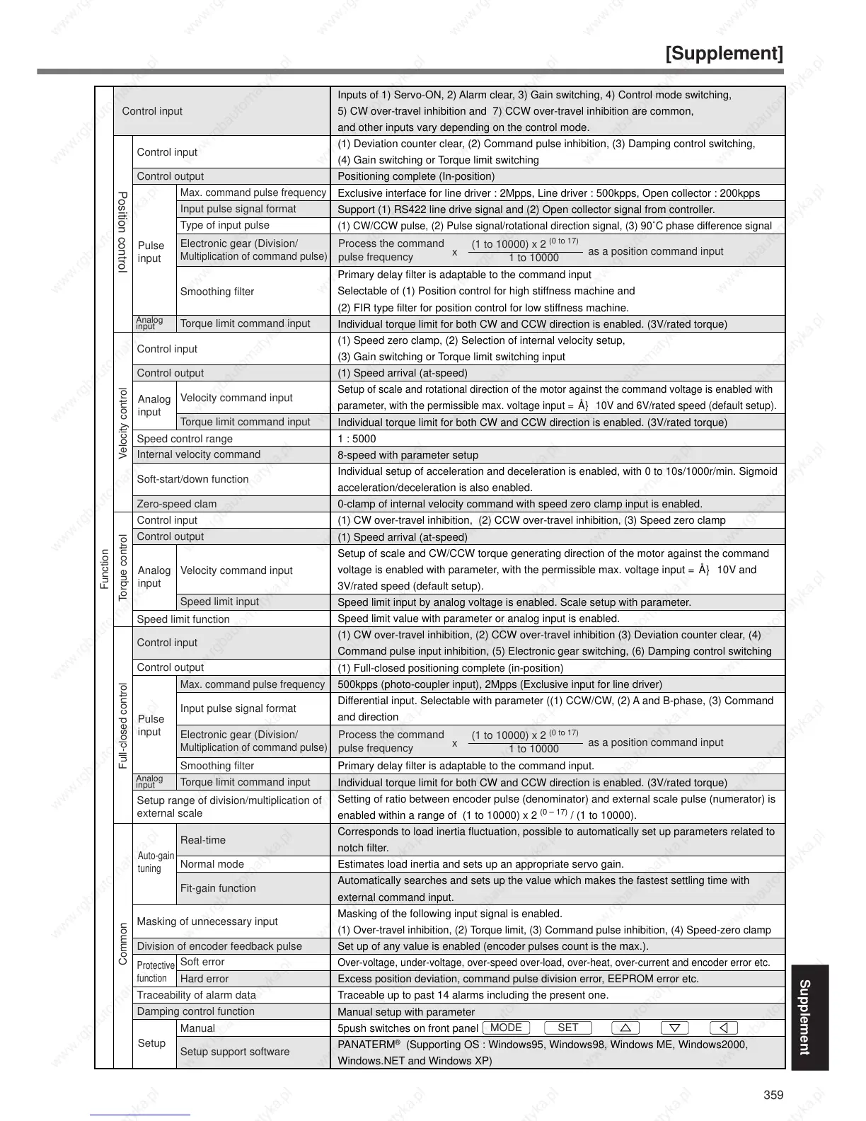 Command pulse input inhibition, (5) Electronic gear switching, (6) Damping control switching