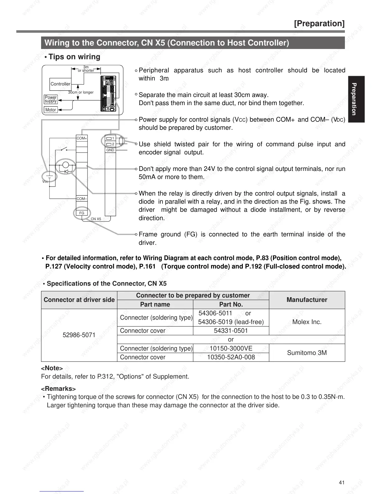• Tightening torque of the screws for connector (CN X5) for the connection to the host to be 0.3 to 0.35N