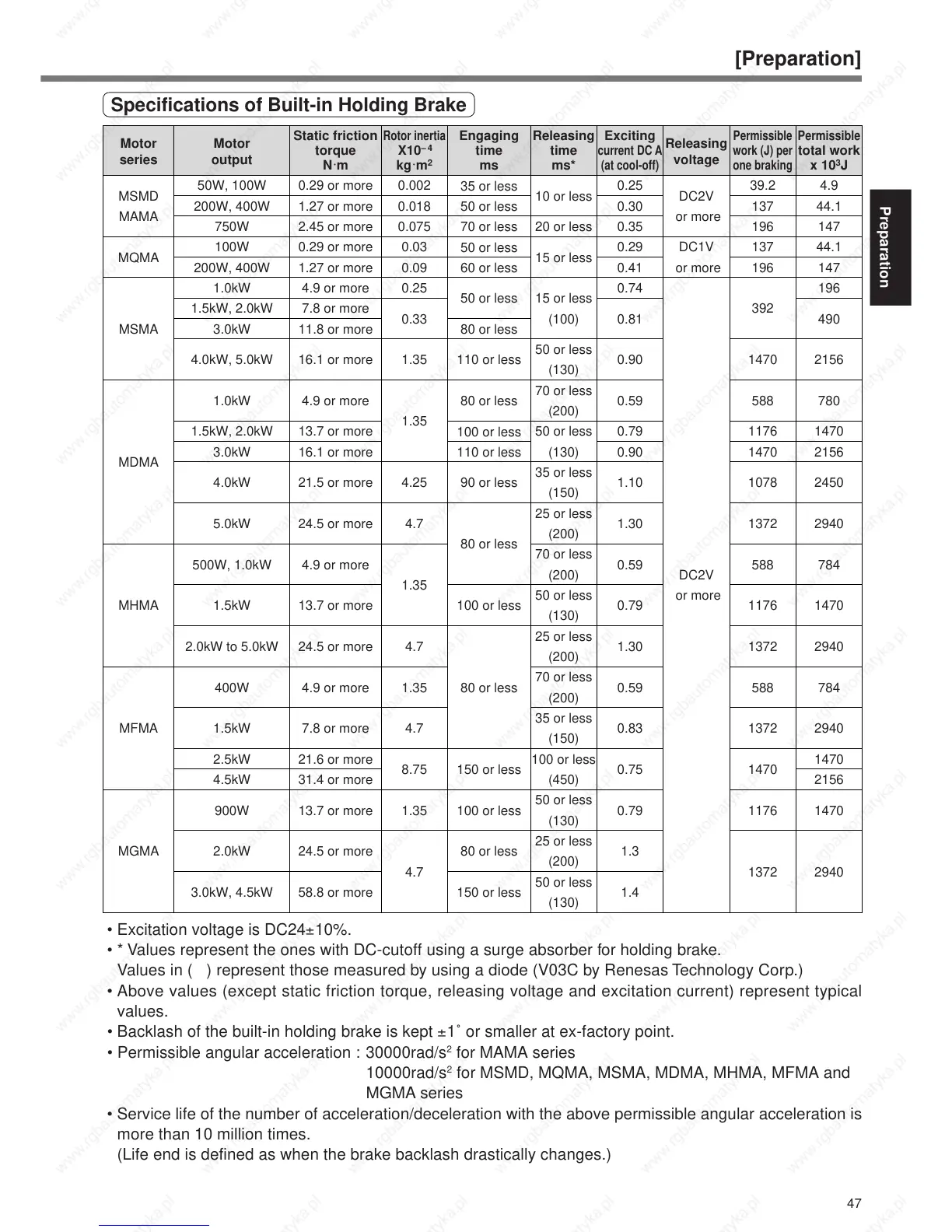 • Backlash of the built-in holding brake is kept ±1˚ or smaller at ex-factory point.