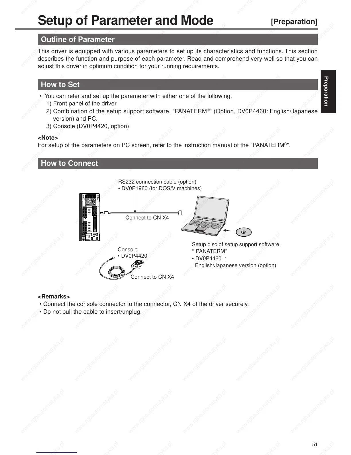 For setup of the parameters on PC screen, refer to the instruction manual of the "PANATERM