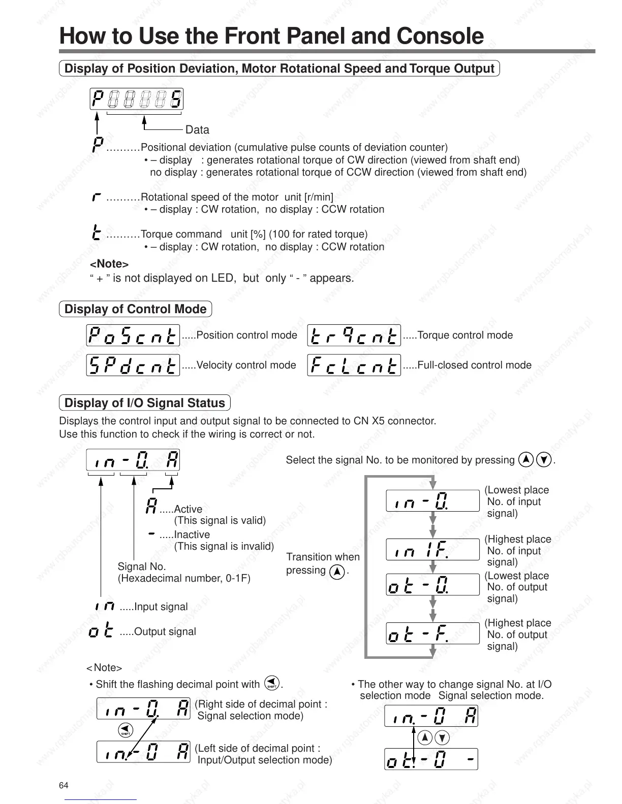 Display of Position Deviation, Motor Rotational Speed and Torque Output