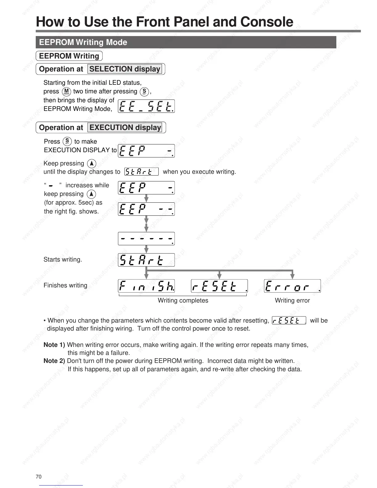 Note 2) Don't turn off the power during EEPROM writing. Incorrect data might be written.