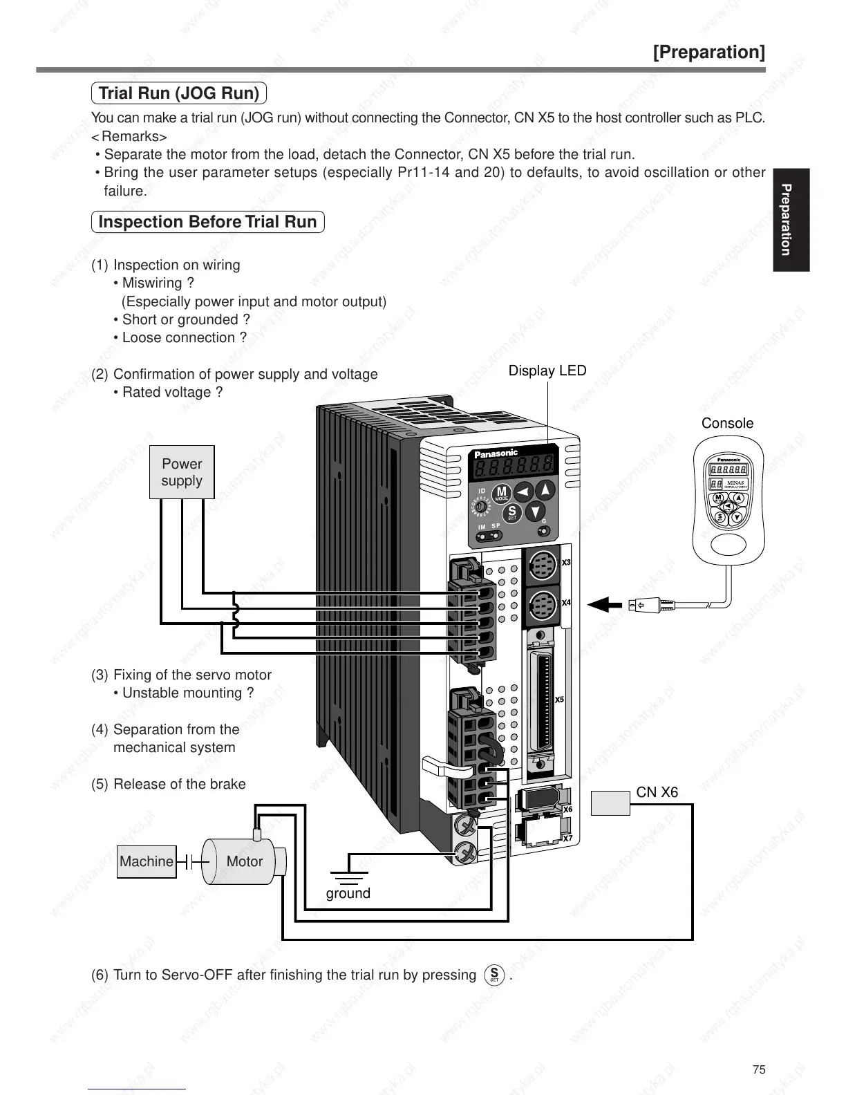 • Separate the motor from the load, detach the Connector, CN X5 before the trial run.