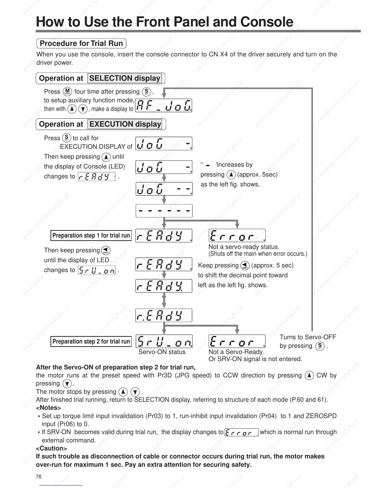 • If SRV-ON becomes valid during trial run, the display changes to which is normal run through