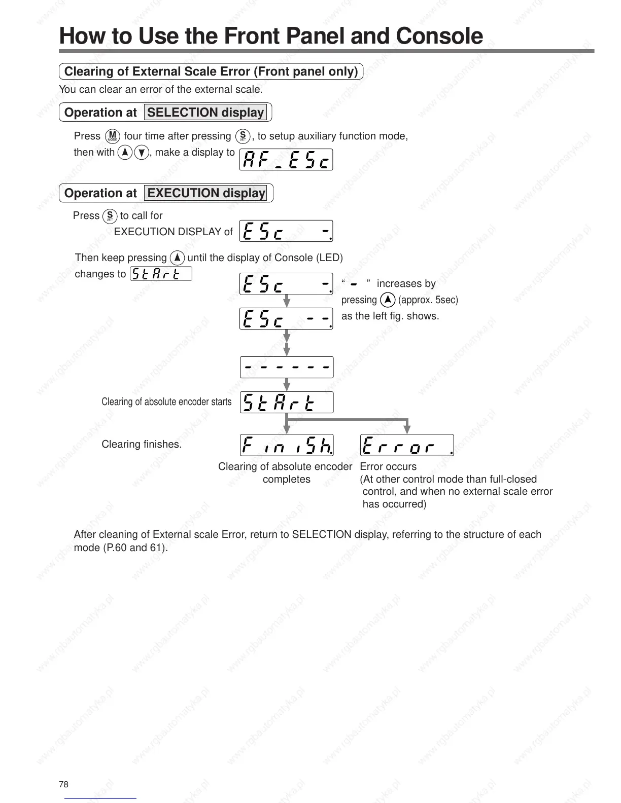 After cleaning of External scale Error, return to SELECTION display, referring to the structure of each