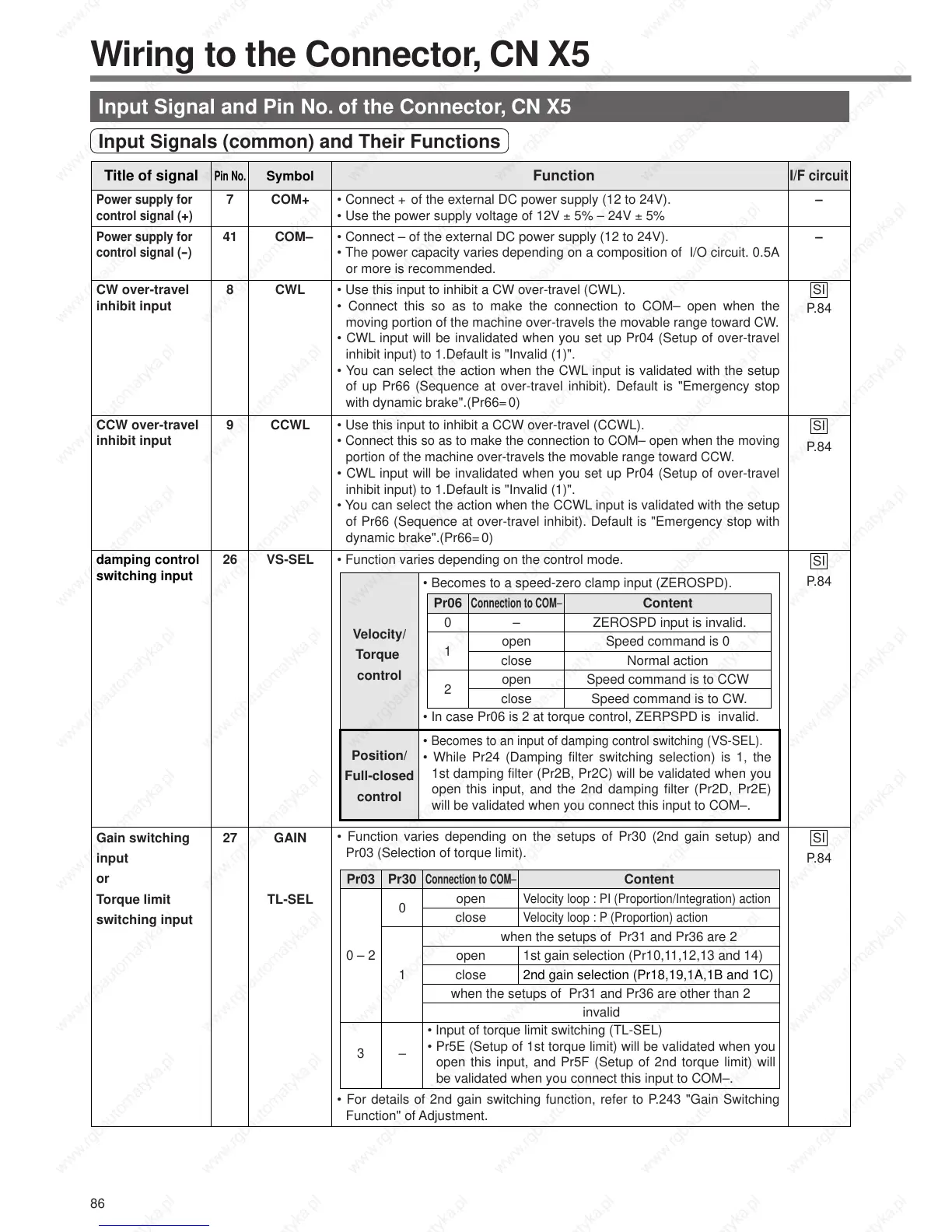 • CWL input will be invalidated when you set up Pr04 (Setup of over-travel